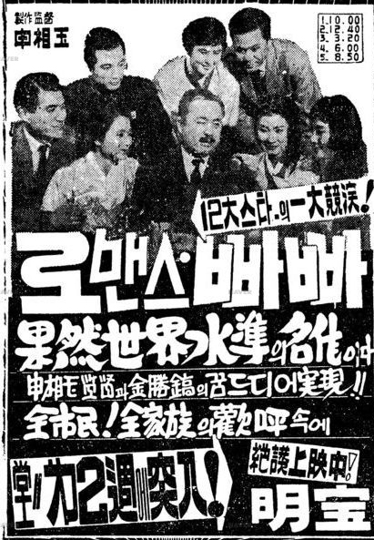 영화 두편으로 단정짓기는 어렵지만 당시 <로맨스빠빠>나 <로맨스그레이>에 나오는 배우님들은 어느정도 중첩됩니다. 당대 인기 있는 배우님들이 나왔다는 것은 당연하겠죠. 아마도 신상옥 감독님의 군단이라고 불릴만한 배우 및 스텝들이 제작을 하지 않았을까 하는 생각을 하게 됩니다.